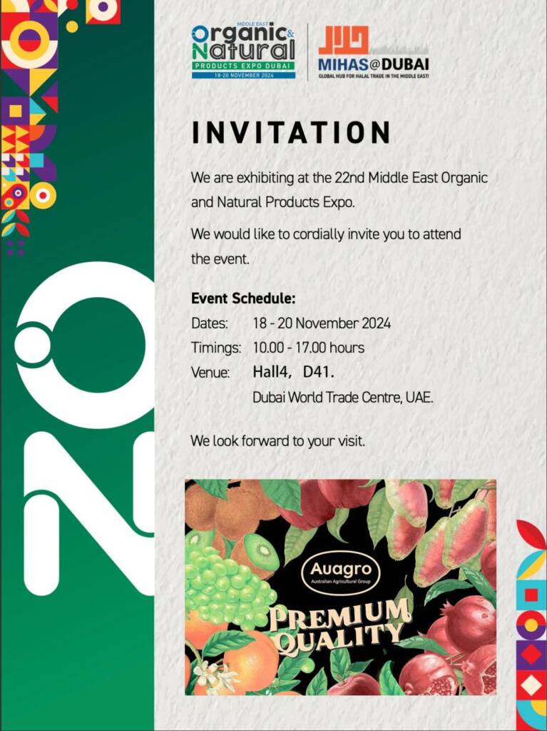 Highlights! Australian Agricultural Group invited to attend Dubai Natural & Organic Products Expo