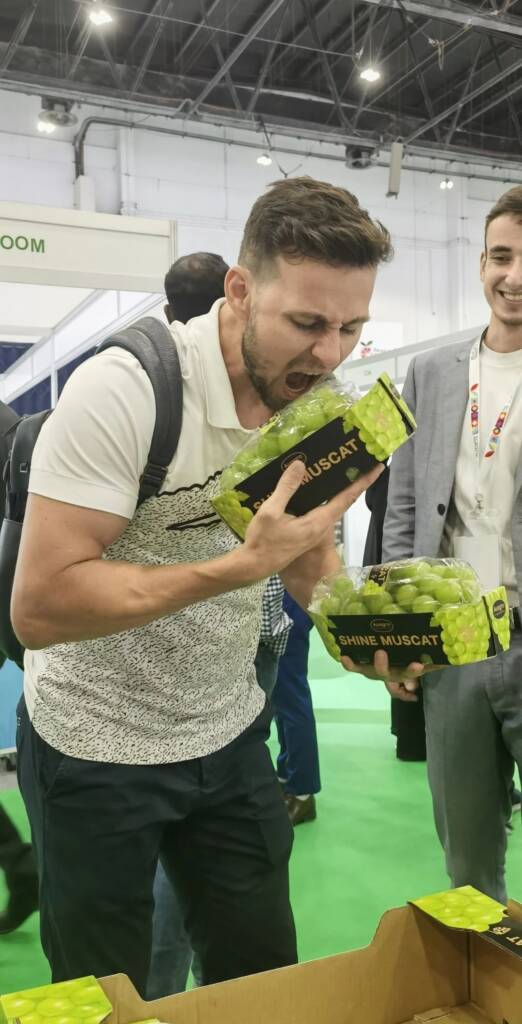 High quality fruits from China’s top ten production areas made their debut at the exhibition, among which the Orgro Sunshine Rose grape became the star product in the tasting area with its crystal clear fruit grains and rich sweet taste.