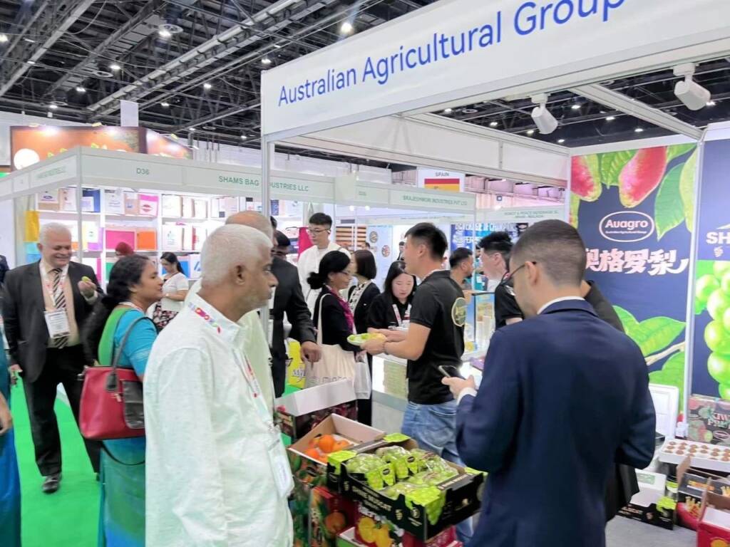 Australian Agricultural Group has been invited to exhibit a variety of high-quality agricultural products from China’s top ten planting and export bases, such as Ogro pears, red pears, kiwi fruits, apples, pomegranates, citrus fruits, Zunhua chestnuts, and Fairy Mountain Snow Springs, to share a healthy journey with professional buyers and industry partners from the Middle East and around the world!